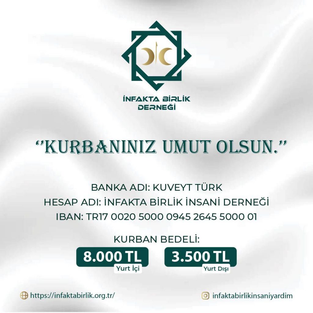Türkiye kesimlerimiz ile kurbanlarınız depremzede insanlarımıza ve İstanbul’da ikamet eden hak sahiplerine infak edilecektir.